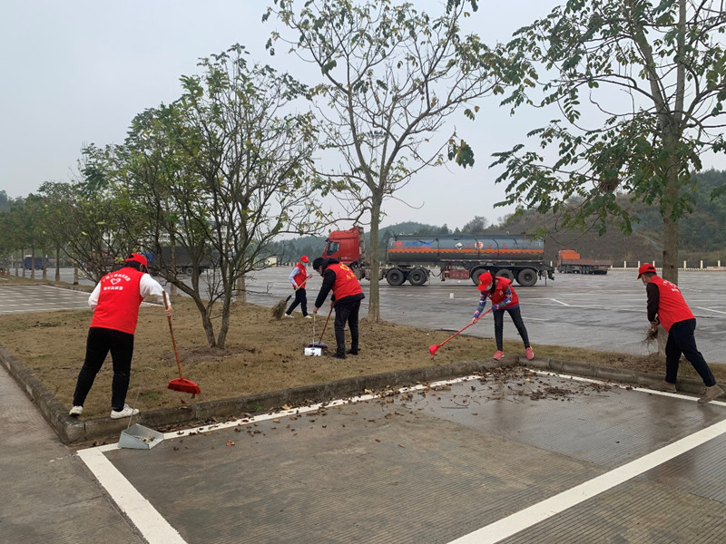 此外,為給旅客提供干凈舒適的環(huán)境,青年志愿者們在服務(wù)區(qū)熱火朝天大掃除。從消毒清洗服務(wù)區(qū)內(nèi)場的衛(wèi)生死角到撿拾服務(wù)區(qū)外場周邊綠化帶的雜草雜物、垃圾等,經(jīng)過一個多小時的奮戰(zhàn),服務(wù)區(qū)內(nèi)外場的環(huán)境煥然一新。