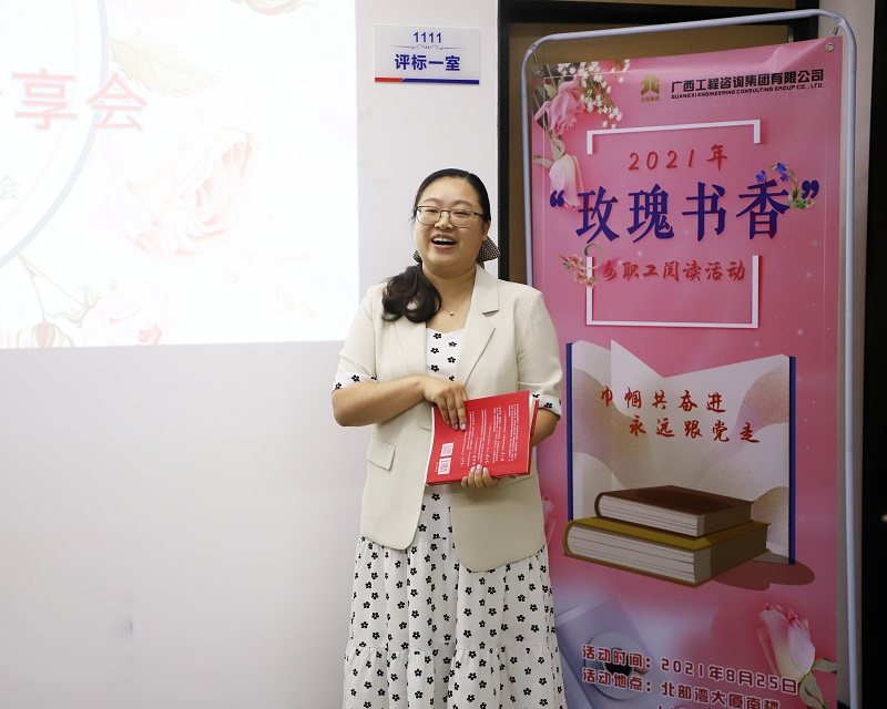 “我不去想是否能夠成功 既然選擇了遠(yuǎn)方 便只顧風(fēng)雨兼程……”8月25日,廣西工程咨詢集團(tuán)2021年“玫瑰書香”女職工讀書分享會(huì)現(xiàn)場(chǎng),公司女職工通過(guò)詩(shī)歌朗誦表演、誦讀紅色家書、推薦好書、分享閱讀感悟等形式踴躍參與活動(dòng),營(yíng)造濃郁書香文化,展現(xiàn)新時(shí)代巾幗風(fēng)采。公司黨委書記、董事長(zhǎng)、總經(jīng)理龐漢為活動(dòng)紀(jì)念品定制版書簽題寫寄語(yǔ),向女職工送上祝福。