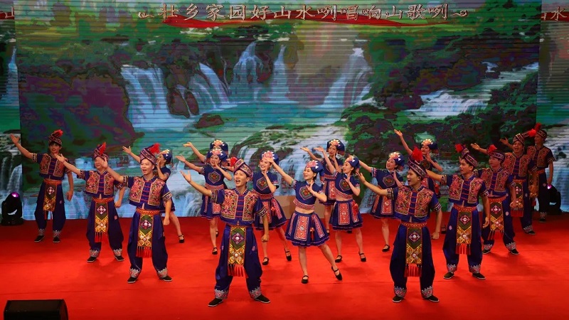 為了演繹出壯族歌舞的精髓和韻味,桂咨青年在繁忙的工作之余排演磨合,學(xué)習(xí)壯語發(fā)音,熟記舞蹈動(dòng)作。《壯鄉(xiāng)兒女頌黨恩》的精彩演繹,是桂咨青年銳意創(chuàng)新、蓬勃向上的生動(dòng)寫照。