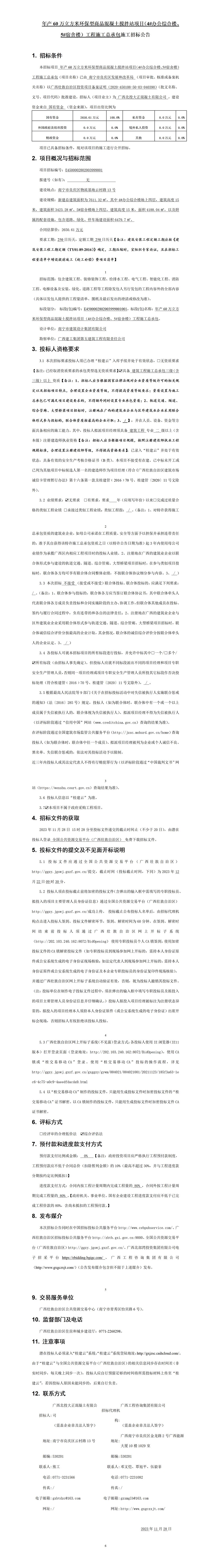 年產(chǎn)60萬立方米環(huán)保型商品混凝土攪拌站項目(4#辦公綜合樓、5#宿舍樓)工程施工總承包施工招標(biāo)公告